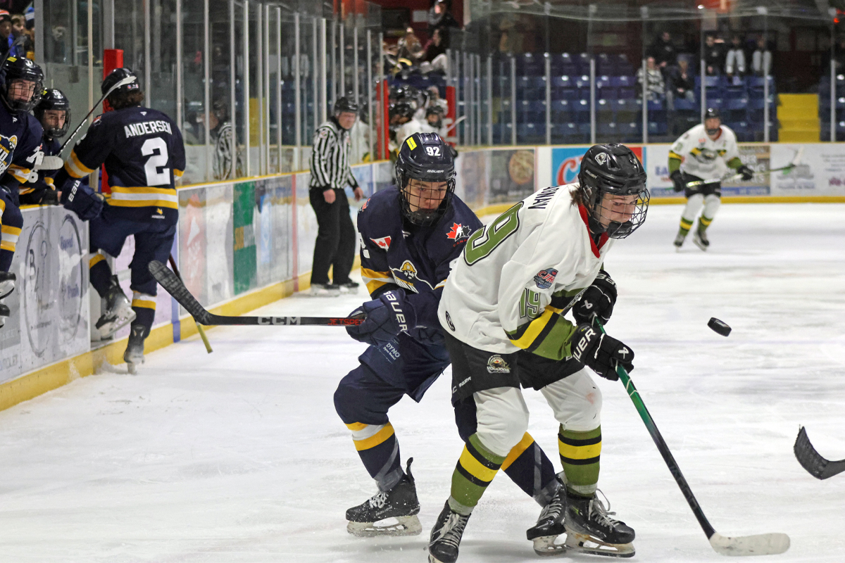 TIMMINS, Ont. – Continuing to impress, the surging Timmins Rock racked up their 18th straight Northern Ontario Junior Hockey League victory Friday in dumping the Kirkland Lake Gold Miners 8-3 at McIntyre Arena. Continuing their mastery of the Gold Miners, the Rock have registered 56 consecutive victories over them, last suffering a defeat against this opponent […]