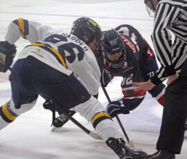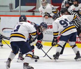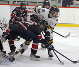 The visitors dashed the shutout bid of the Rapids’ Keiran Caughran as they struck shorthanded 53 second into the third when Owen O’Grady forced a turnover and dished a quick feed over to Vaive Hickey in the slot where he ripped in his third goal in as many games.