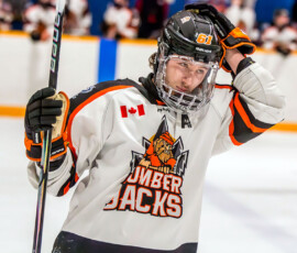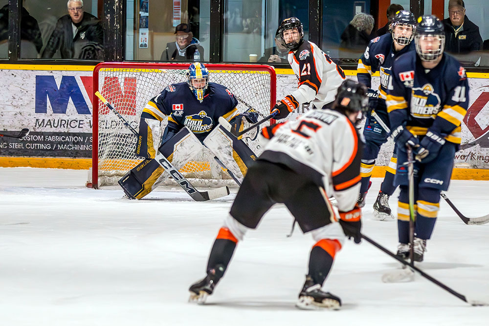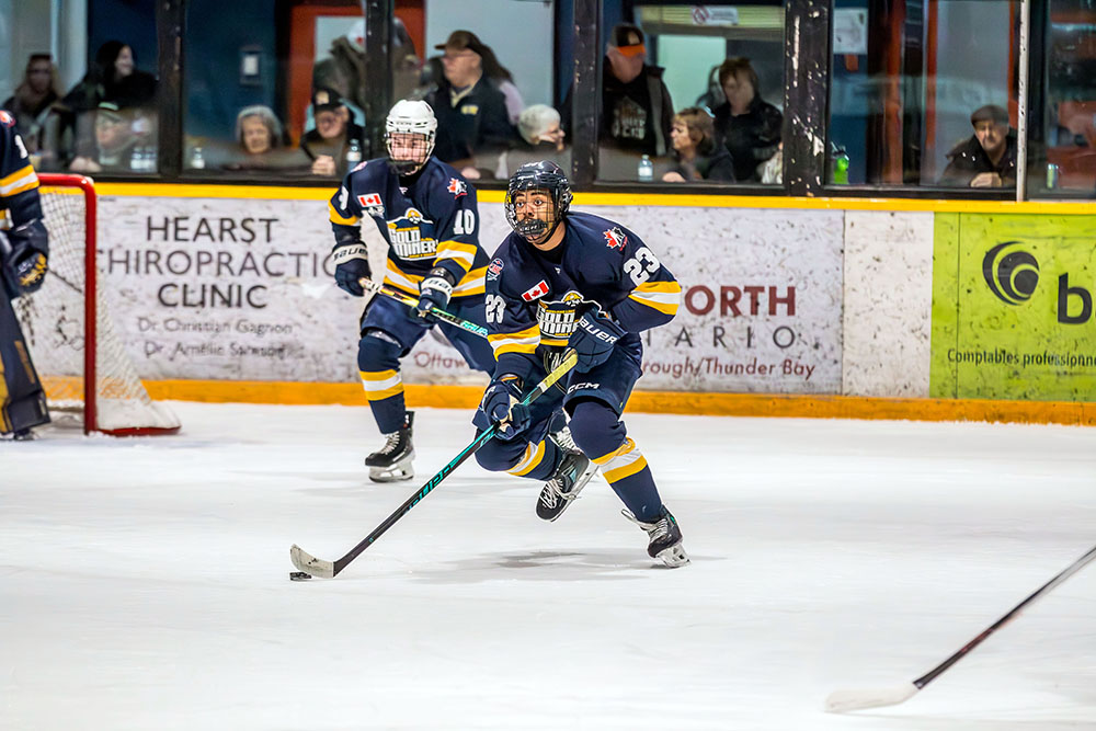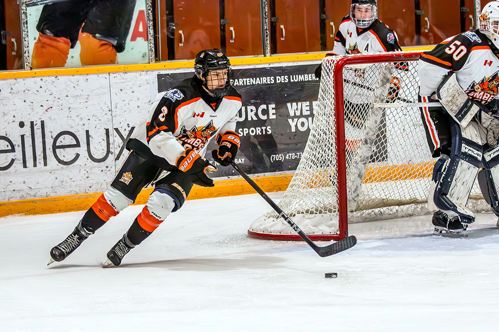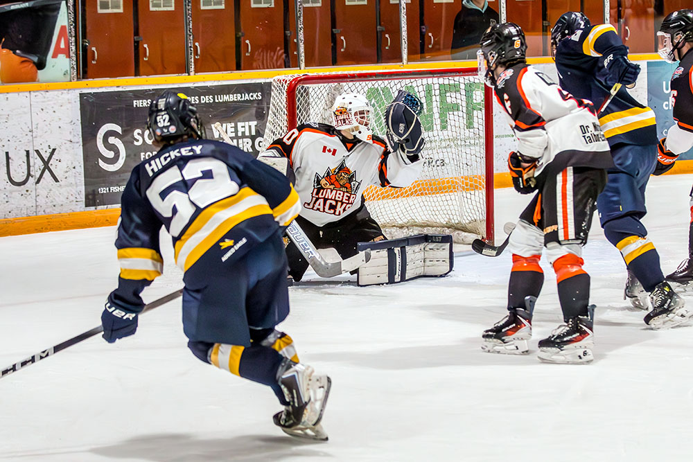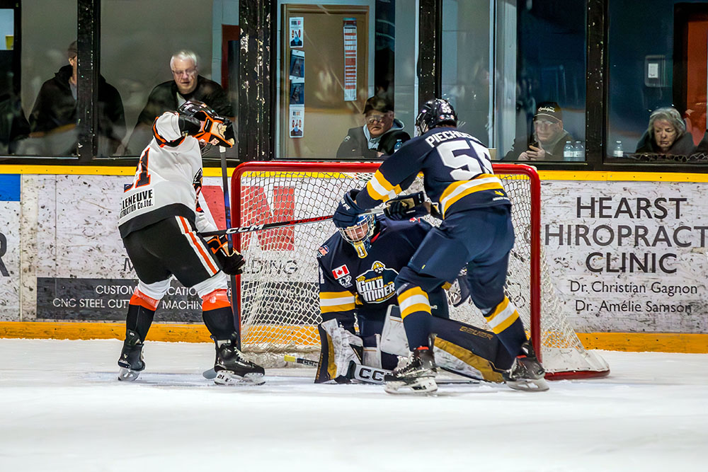 HEARST, Ont. – An impressive Mathieu Comeau marker, 3:42 into overtime, was the difference as the Hearst Lumberjacks withstood a solid effort from the Kirkland Lake Gold Miners before eventually prevailing for their 12th consecutive Northern Ontario Junior Hockey League victory Saturday in a matchup held at Claude Larose Recreation Centre.