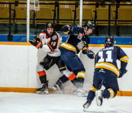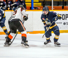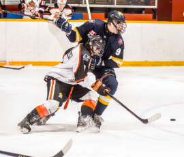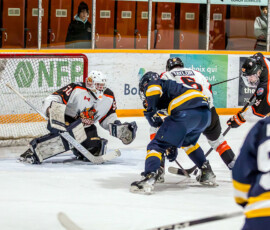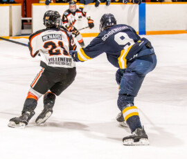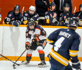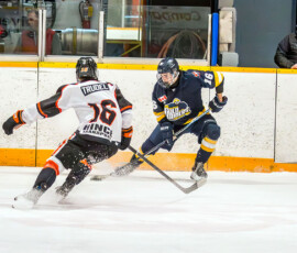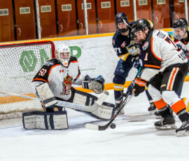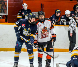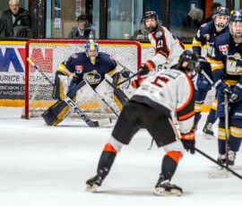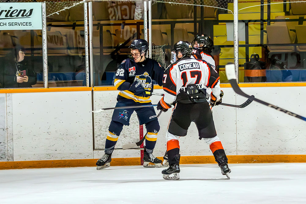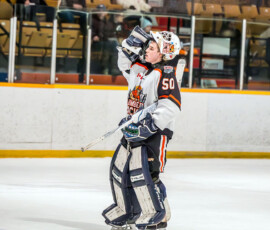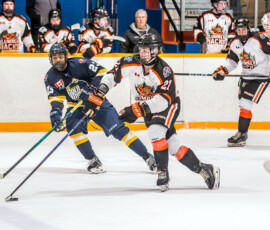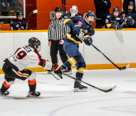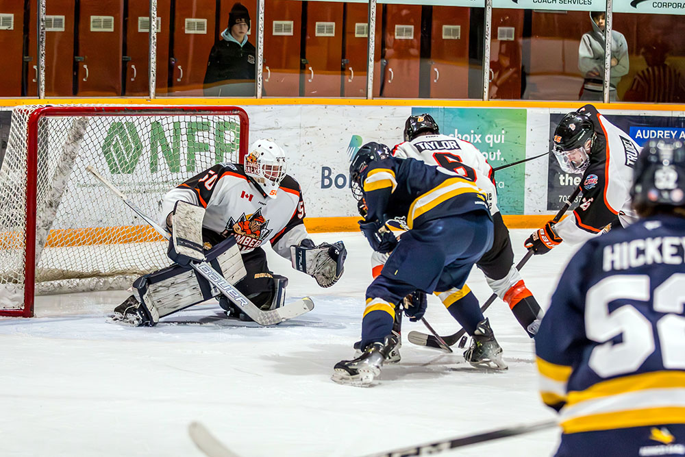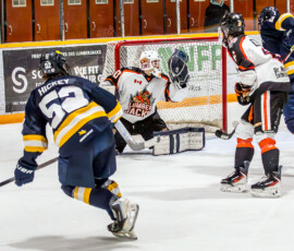 Adding to their edge while shorthanded, Hearst’s Cole Miller chipped a play ahead that sent the home side in on a two-man break that saw Cameron Menard finish off a quick give-and-go with Comeau for his league-leading 40th tally of the season at 13:14.